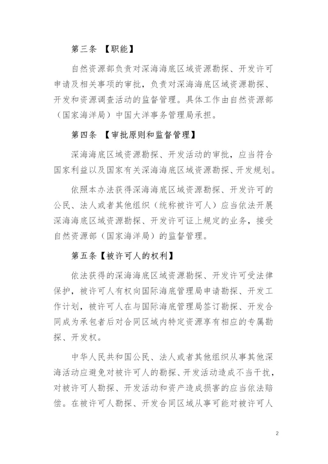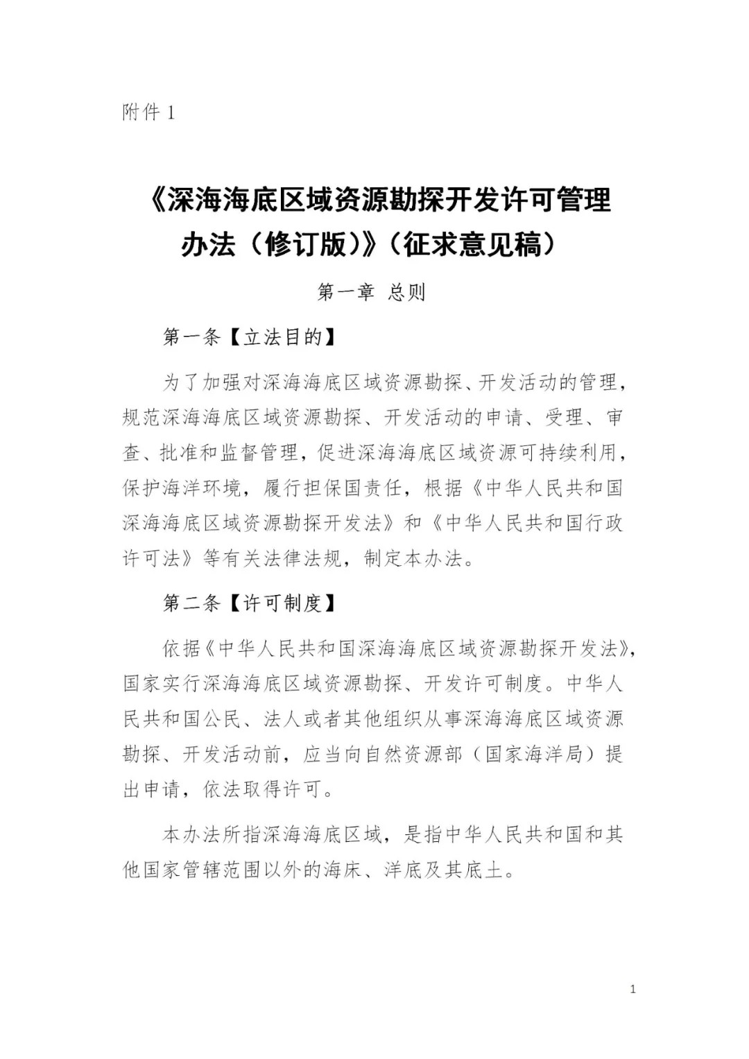 《深海海底区域资源勘探开发许可管理办法(修订版)》公开征求意见