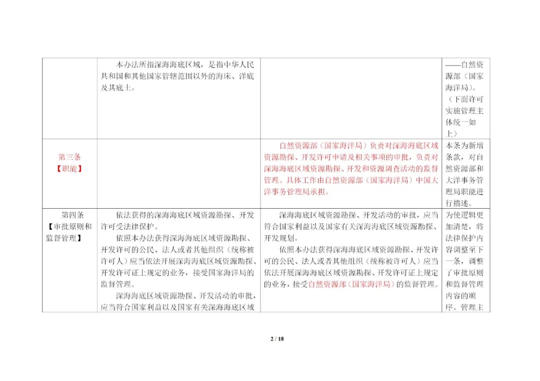 为切实履行我国在国际海底区域活动中的担保国责任,规范我国公民、法人或者其他组织在国际海底区域的勘探、开发及相关活动,自然资源部(国家海洋局)修订形成了《深海海底区域资源勘探开发许可管理办法(修订版)》(征求意见稿)。