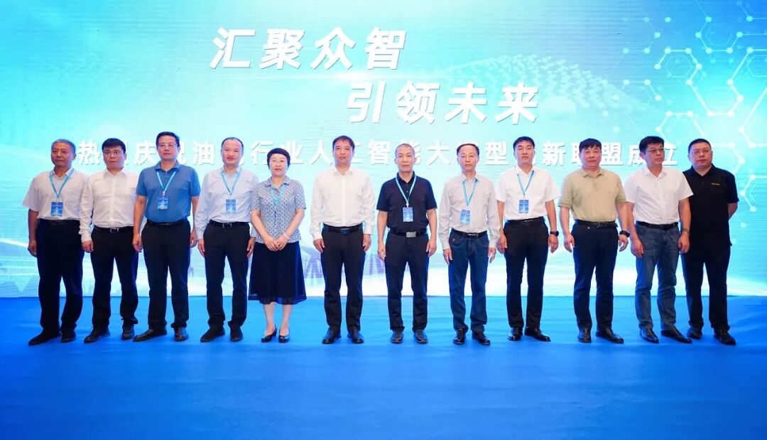▲2025年8月,刘文岭(右五)参加油气行业人工智能大模型创新联盟成立启动仪式